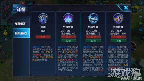 1. 一技能:策马奔腾:孙策挥舞长枪,向前冲刺,对路径上的敌人造成伤害,并附加减速效果。这个技能不仅能让孙策快速接近敌人,还能对其造成有效打击。